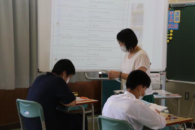 今日の1時間目、1年生教室では英語の授業を行っています。