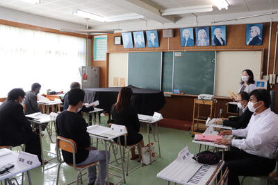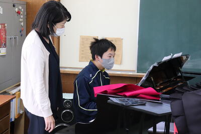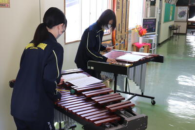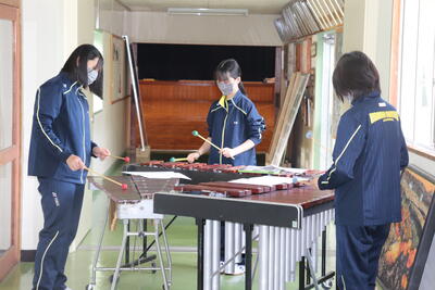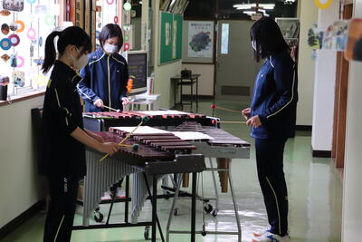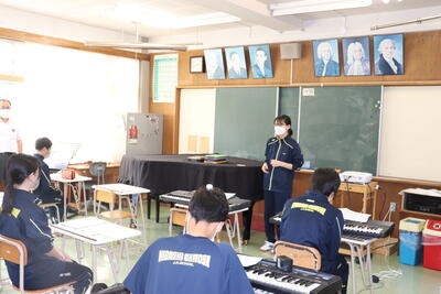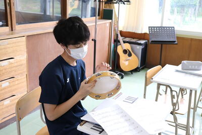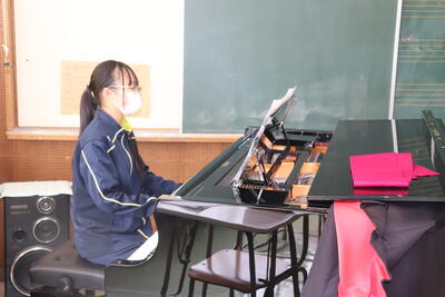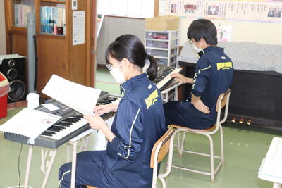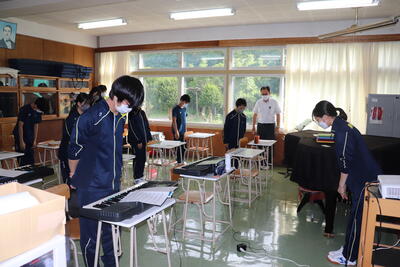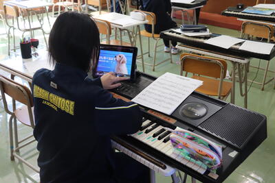 音楽の授業では、器楽と合唱の練習が始まっています。