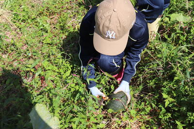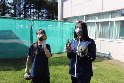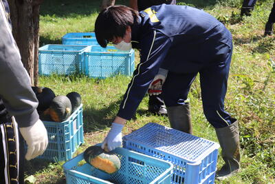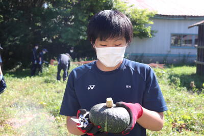 午後の時間は、9月23日(金)に予定している『カボチャ販売』に向け、カボチャの収穫を行いました。