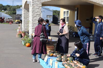 例年より個数は少ないものの、多くの方に来ていただき、生徒が真心込めて作ったカボチャをお買い上げ下さいました。
