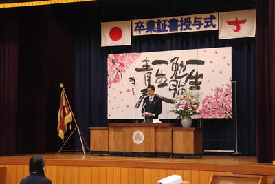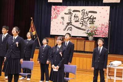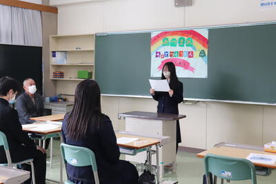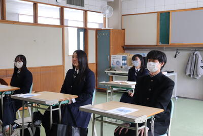 今日は同窓会長の明石さんにお越しいただき、3年生の同窓会入会式が行われました。伝統を受け継ぐ卒業生の1人となるという自覚を胸に、明後日の卒業式を迎えましょう。