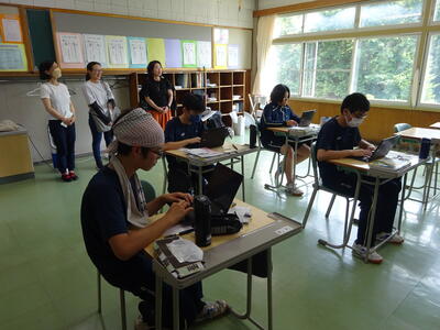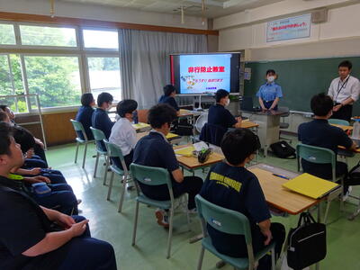 昨日の6時間目に非行防止教室を行いました。千歳警察署の方々に来ていただいて、SNSのトラブルや災害への対策などについてお話しをしていただきました。