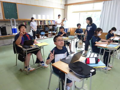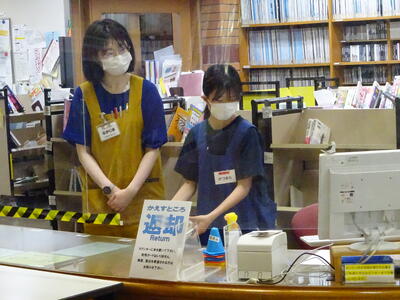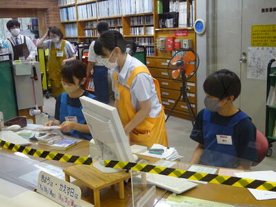 今日は1年生が職場体験学習に行っています。行き先は千歳市立図書館と第一管区海上保安部千歳航空基地です。本日は、千歳市立図書館での体験の様子をご紹介します。