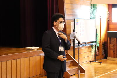 その後、インターンシップで来ている2名の実習生から、全校生徒に先輩としてのアドバイス。