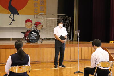 各委員会からの話の後、夏休み作品展の表彰を行いました。