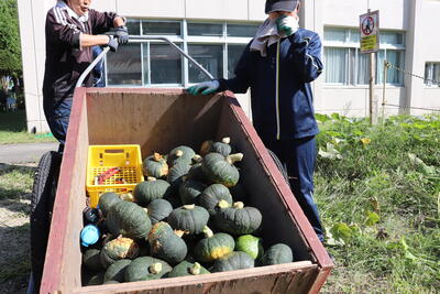 全校生徒でかぼちゃを栽培、収穫、販売し、その売上金を寄付する活動