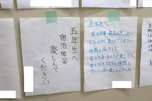 それを前に,前面校舎の階段の壁に,6年生からのメッセージが飾られました。