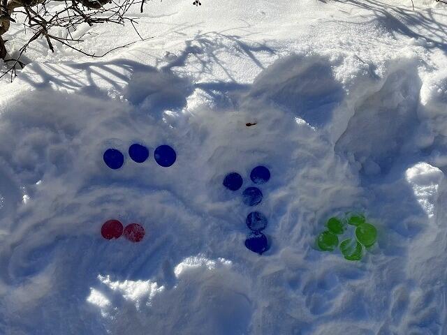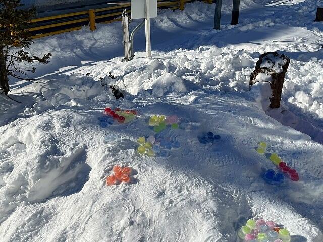 1年生の生活科の学習で色水をつくって外で凍らせました。