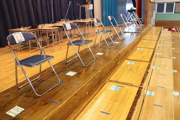 体育館の座席には,お子さんが引いた座席の番号がついています。