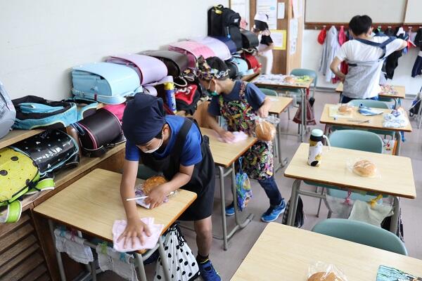 学校生活の中でも,全員がマスクを外す時間帯になるため,感染予防の手立てが特に重要です。