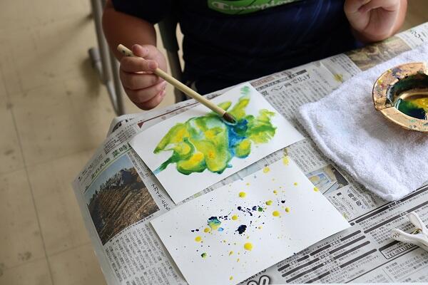 本日の学習は,水彩絵の具の表現技法を学びました。