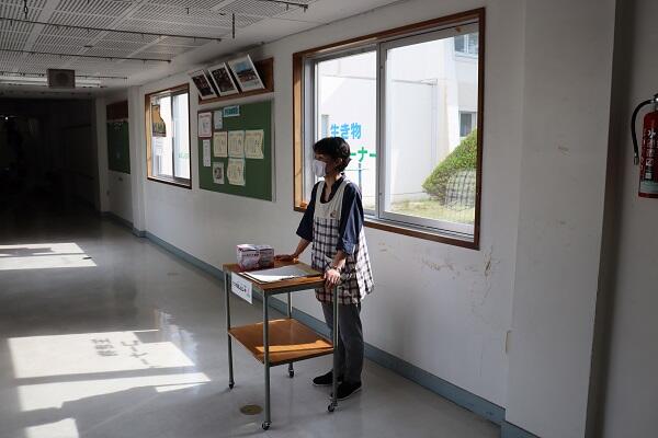廊下の窓も開け,校内の送風機能も使用して空気の流れを作っています。