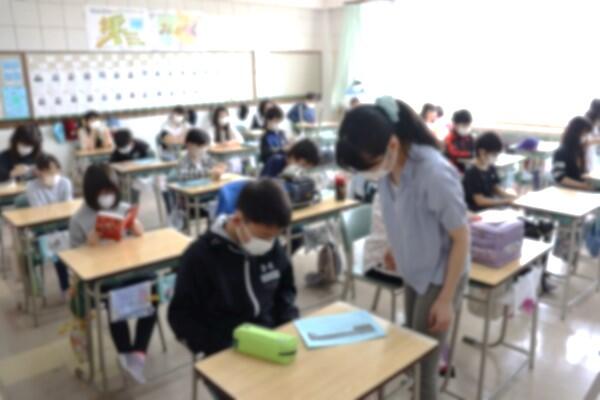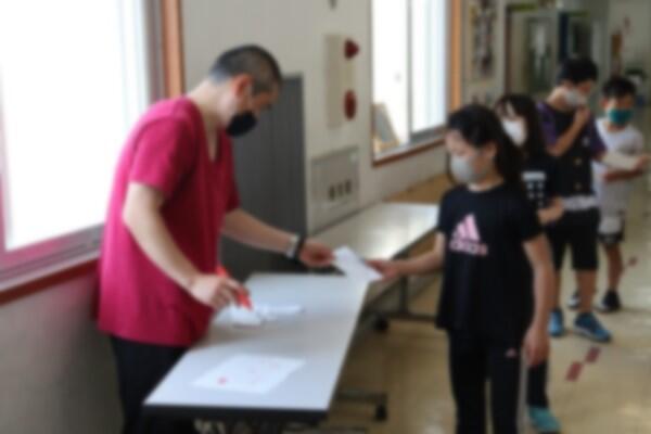 登校後,すぐに健康観察シートで子どもたちの体調を確認します。