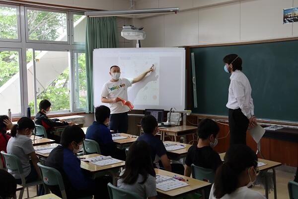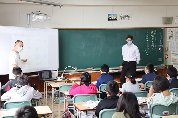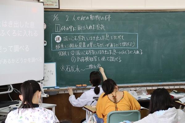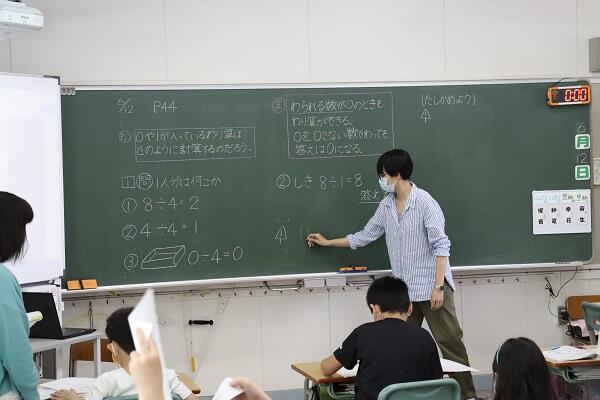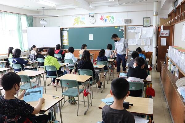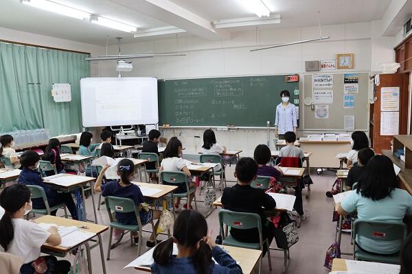 前半では全体での指導を行い,後半は人数を分けて子供たちの学びに合わせた指導を行います。
