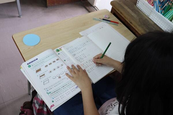「安心・安全」の中で,集中して課題に取り組む日の出の子どもたち。