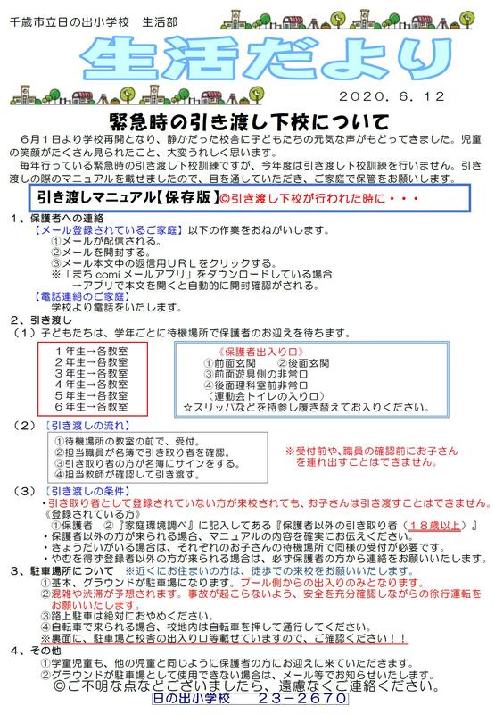 ※本連絡は,本日,文書とメールでもお届けいたします。