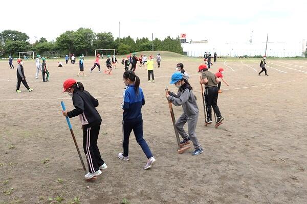 6年生の体育では,「ハードル走」に取り組んでいました。