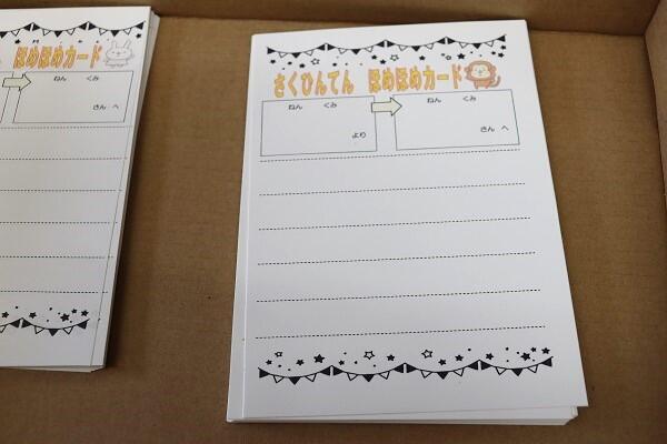 特に印象に残った作品には,「ほめほめカード」を使って制作した児童に感想を伝えます。