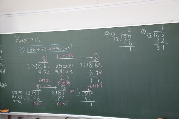 4年生が「わり算の筆算を考えよう」の学習で,2・3位数を2位数でわる除法計算について学びました。