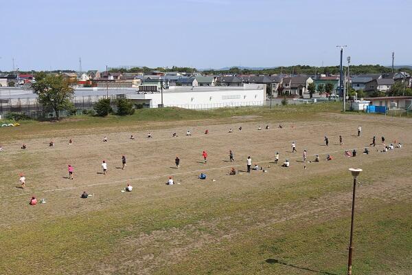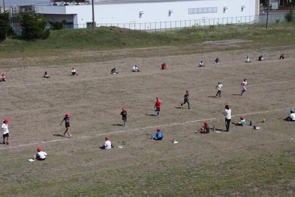 晴天のもと,最後まで粘り強く走りぬく子供たち。