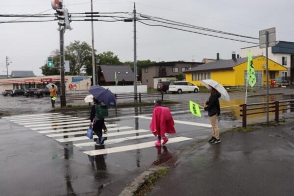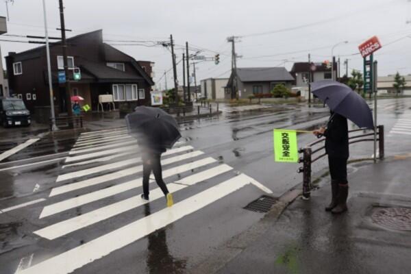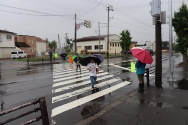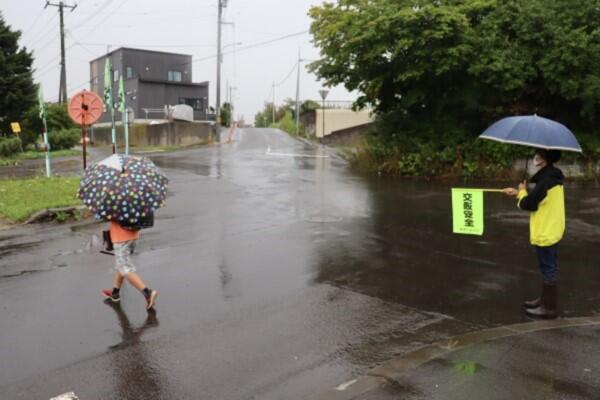 雨模様の中,朝早くから活動頂く保護者の皆様。
