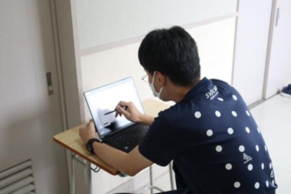 指導者は離れた場所から,端末を通して指導をします。
