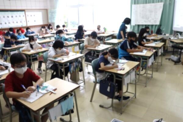 見事な集中力で,授業に向かう子供たち。正しい学びのリズムが身についています。