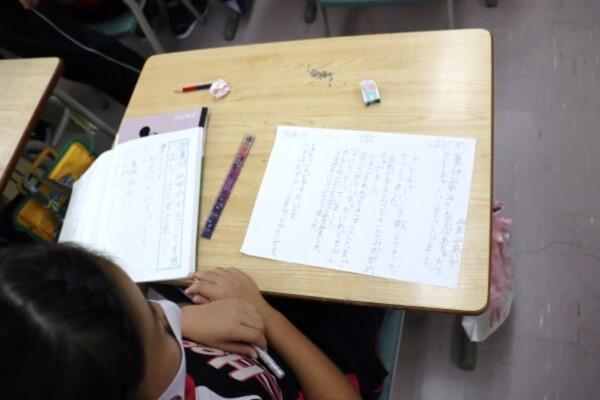 「OK!」をもらった児童は,いよいよ作文用紙に書いていきます。