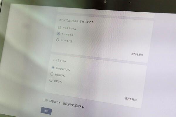 次に,クラスルームにある「Googleフォーム」で簡単な質問に回答します。どの子もスムーズです。