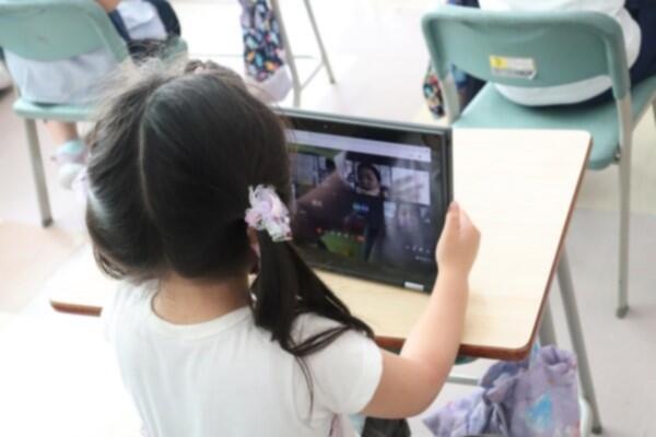 「○○ちゃんだ!」「すごい!」と,画面に映る友達の姿を見て,歓声が上がりました。