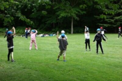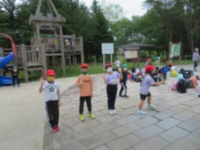 1年生が、シャボン玉作りに挑戦。順番を守って並んでいて立派です。