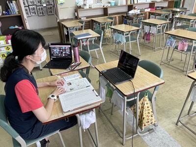 6年生が学年閉鎖になったため、本校で初めてリモート授業を行っています。