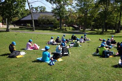 支笏湖では、芝生の上で気持ちよくお昼ご飯を食べました。