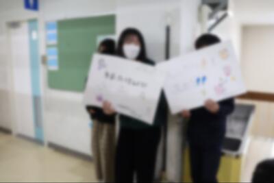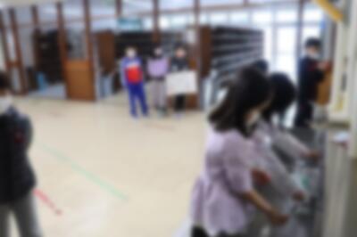 始めはちょっと恥ずかしそうに自分たちで書いたポスターをもって呼びかけをしていましたが、次々と手洗いしていく様子を見て少し安心した表情に…。「自分のからだを自分で守る行動と心の大切さ」を日の出っ子に呼びかける活動となりました。