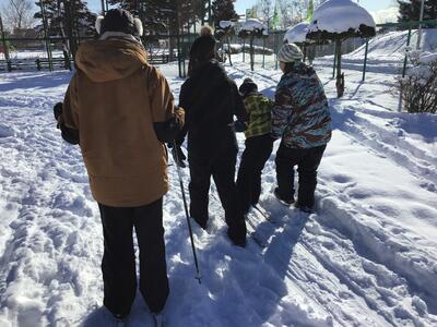 雪に親しみ、冬でも元気に活動しています。