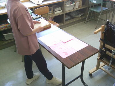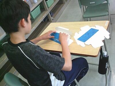今日は、形を揃えて丁寧に台紙に折り紙を貼り付ける作業です。