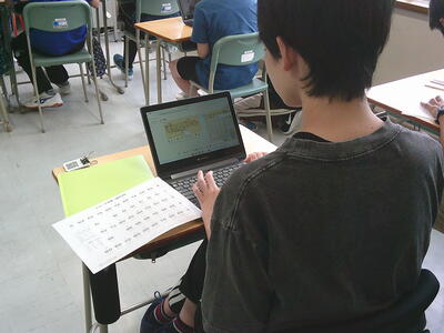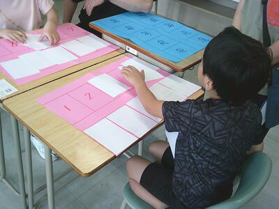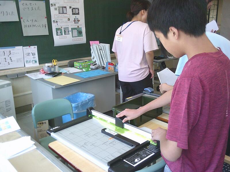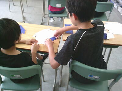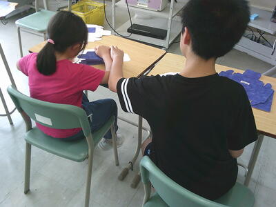 小学生と中学生がペアになり、中学生が少し小学生を手助けしながら作業を進めます。