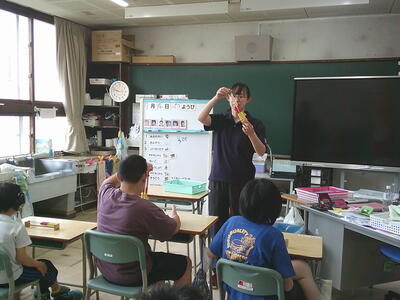 小学校高学年が中学生と一緒に作業をし、中学校の学習内容に触れる試みです。