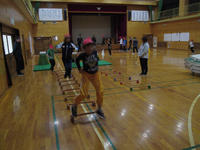 今日は跳び箱、平均台、ミニハードル、マット、ラダー等を使って体を動かしました。