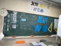 中学部は以前にお伝えしました授業交流で数学の授業を公開しました。多角形の内角の和を求める公式を考える授業でした。このグループの生徒は、多角形を三角形に分けて内角を求めていく方法を考え、発表することができていました。