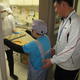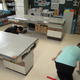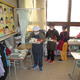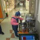 家庭科室の椅子等を廊下に出し、床ふきをしています。入った瞬間、「すごくきれいになっている!」と思いました。一生懸命に取り組んでいました。