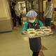配膳室に給食を取りに行きます。当番等により運ぶものは違いますが、汁物など食器に盛られた食べ物をこぼさないように運ぶ力を身に付けます。北進は配膳員さんが全員分の盛り付けをしています。大変助けられています。