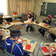 教室では、自分の食べるものをお盆に入れて、机まで運びます。