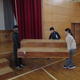 新体育館と旧体育館(本校は体育館が2つあります)のワックスがけを行うため、備品の移動や床の清掃を小学部3・4・5・6年生と中学部1・2・3年生が行いました。学年によって、また個人によってできることの違いはありますが、お互いに仕事に取り組む姿を見て、自然に学ぶことも多くある時間となりました。