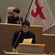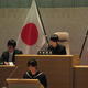 市長役の市議会議長さんがお話をしてくださっているところです。後方に座っているのは、議長役の生徒とこの授業を計画した担当教諭です。