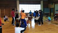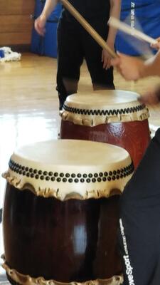 中学校で和太鼓の学習をしました。