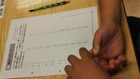 続いて学習したのは、二つの言語の理解の学習として、二文節、三文節くらいの文を伝え、一番最初の言葉を聞き取り、書く練習です。この学習も繰り返し続けてきながら、コミュニケーションの力を少しずつ高めていけたらと考えています。