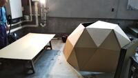 子どもたちが高まった気持ちをクールダウンしたり、落ち着くための空間をということで、職員がドームハウスを制作しています。