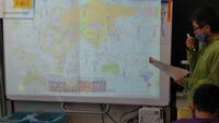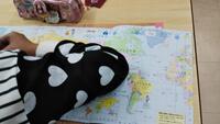 世界地図を広げて資料に載っている国の位置を調べたり、世界のいろいろな地域に住む子どもたちの写真を見たりしながら、ほかの国の子どもたちの生活の様子について、想像していました。