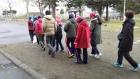 外の気温にあった服装をはじめ、冬場の道路の危険な場所などの確認をしながらの学習です。
